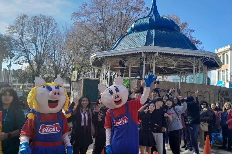 Para celebrar como se debe el Día del Completo, la empresa Pacel regaló en diferentes puntos de Valdivia paquetes de salchichas.