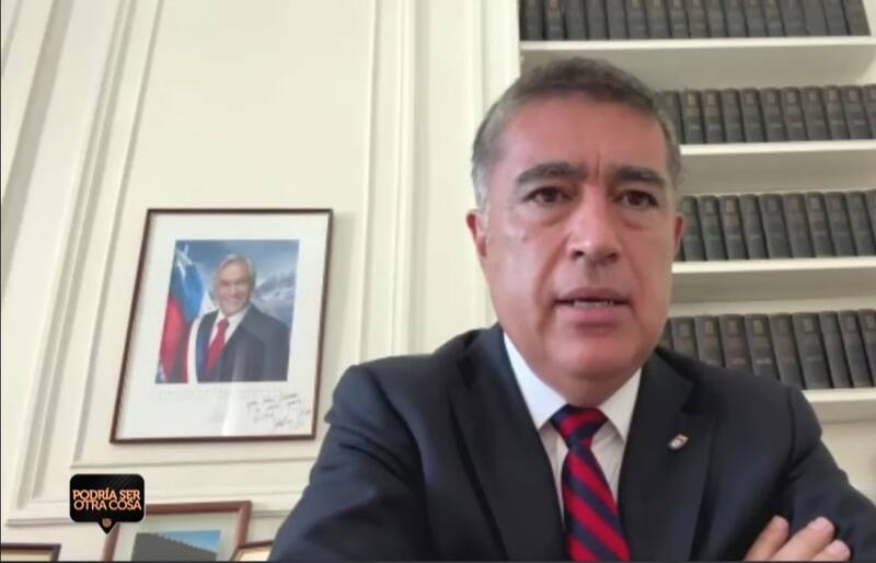 Mario Desbordes apareció en una entrevista con la foto oficial de Piñera a sus espaldas. Le preguntaron en vivo por qué.
