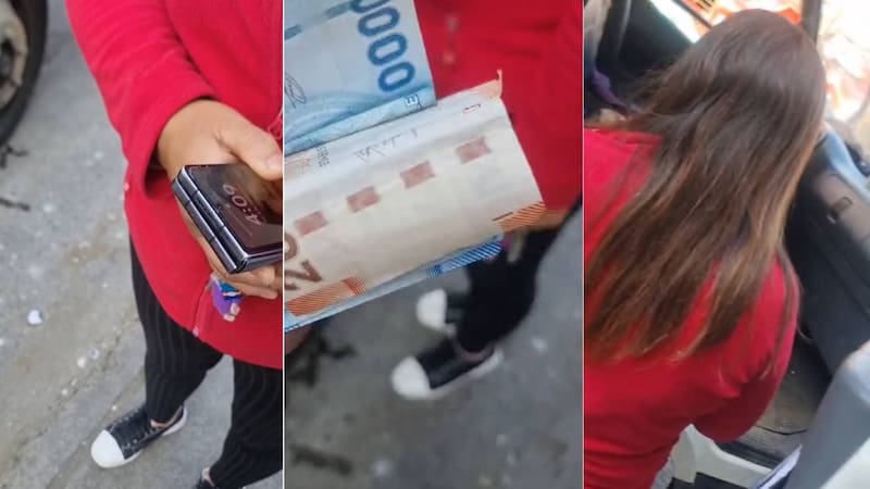 Tal como quedó registrado en un video, la mujer ofreció el dinero, antes de ingresar al vehículo y sacar el efectivo.