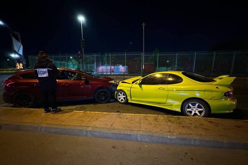 Los hechos ocurrieron a eso de las 22 horas horas, cuando un vehículo que presuntamente venía escapando, chocó contra otro que se encontraba esperando en un semáforo con luz rojo.