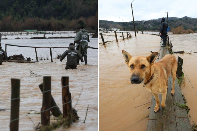 Las imágenes desde el lugar daban cuenta de familias completas aisladas por el desborde de los ríos Lía y Carampangue.