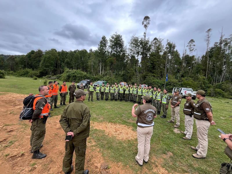 A los rastreos se fueron sumando Bomberos, que incluso llevaron personal especializado de Santiago; efectivos del GOPE, del Gersa, equipos de dron y helicópteros de la Policía de Investigaciones de Valdivia.