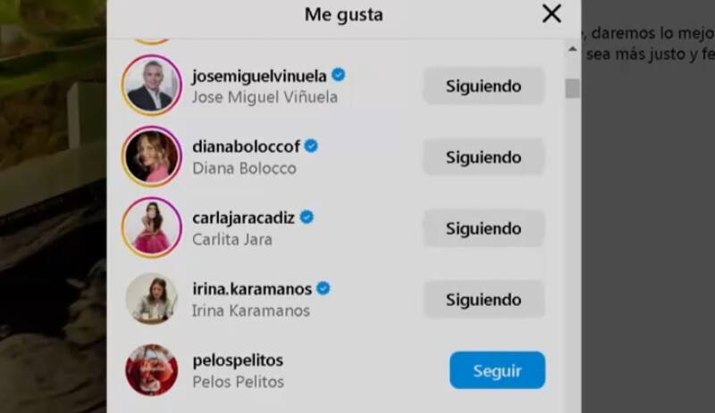 Eso sí, los nombres conocidos se multiplican al momento de revisar los cientos de miles de likes, donde destaca la reacción de su expareja, Irina Karamanos.