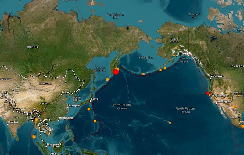 El potente movimiento telúrico se registró a 134 kilómetros al Sureste de Petropavlovsk de Kamcahtka en Rusia. Esto es en la costa rusa que da al Océano Pacífico.