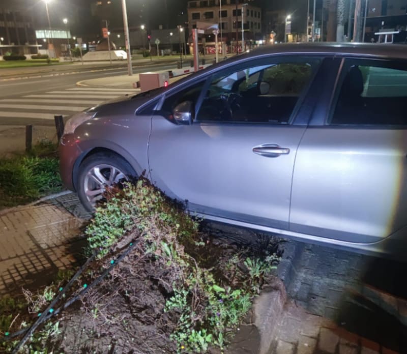 Prueba de ello y tal como muestran algunas fotografías, el hombre no le atinó a la salida del estacionamiento y chocó en un borde de tierra.