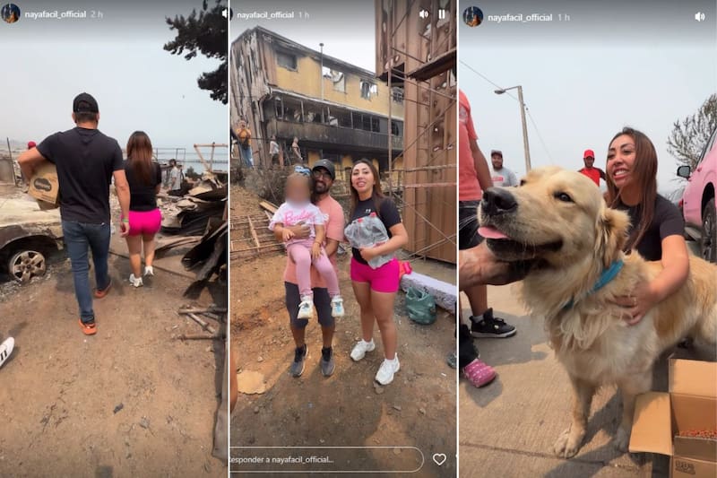Videos muestran la sensible visita. Naya Fácil quiso entregar en mano la ayuda a los afectados por los incendios en Penco y Lirquén.