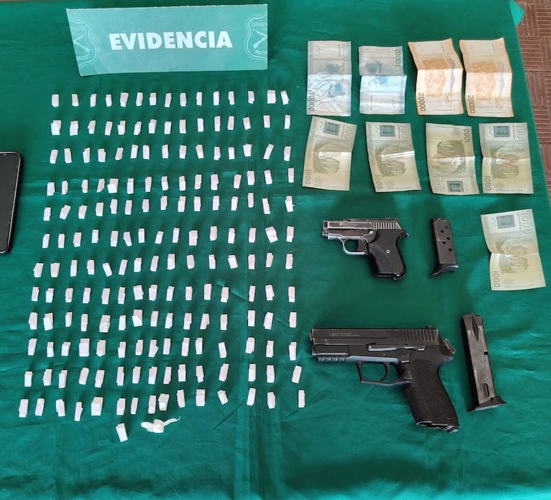 Personal de la Primera Comisaría de Carabineros de Angol, en la Región de La Araucanía, detuvo a un escolar al que se le encontraron dos pistolas, droga dosificada y dinero en efectivo.