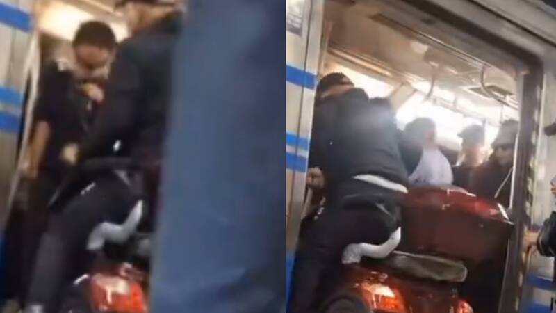 Una escena poco creíble se ha viralizado en estos últimos días. En el video se ve cómo en un vagón de metro lleno, un hombre ingresó con un carrito motorizado, incluso golpeando a pasajeros.