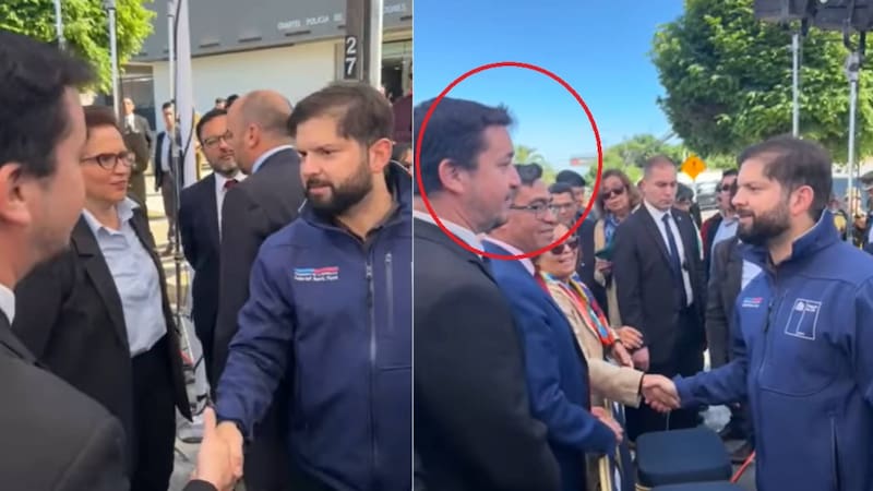 Tal como quedó grabado en un registro, el edil le estiró la mano al Mandatario, quien se acercó a saludarlo. Eso sí, la autoridad comunal tenía otro objetivo en mente.