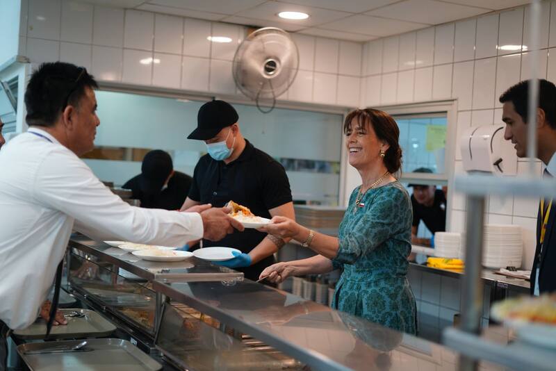Al día siguiente del cambio de mando, luego de su primera noche en el palacio presidencial, María Pía Adriasola tuvo la idea de entrar a la cocina del casino y servir algunos almuerzos.