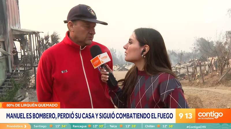 Manuel volvió a tomar contacto con el matinal "Contigo en la Mañana", este lunes. Sus vecinos le facilitaron ropa. Había llegado recién esta mañana a ver su casa. “Llegué, en realidad, a ver lo que quedaba”.