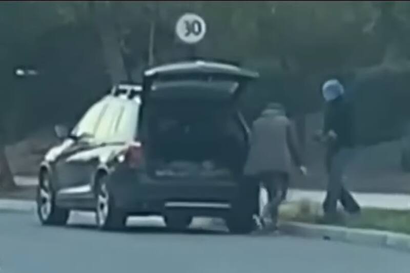 Video muestra que personas que se bajan de un auto -registrados a nombre de la jueza- roban piedras ornamentales del espacio público.