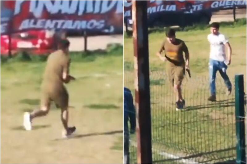 En redes sociales comenzó a circular un registro que captó el momento en que el desconocido ingresó a la cancha con el rostro descubierto y con un arma, ante la mirada de los espectadores del encuentro deportivo.