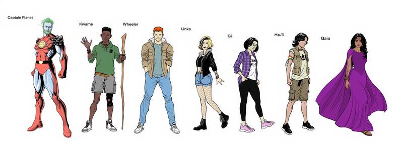 La nueva serie moderniza al héroe y a los Planeteers con un diseño fresco del dibujante Eman Casallos, mientras que el icónico mullet verde del Capitán ha sido reemplazado por un look más moderno.