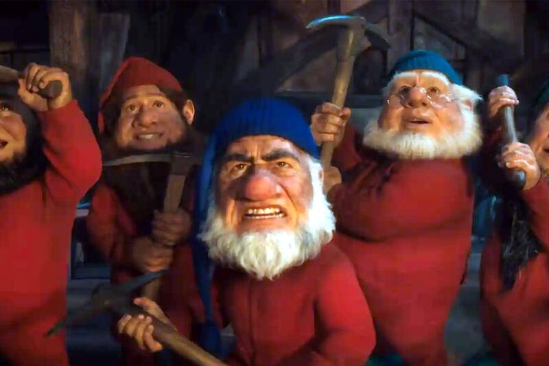 Aunque gran parte de las secuencias del tráiler oficial dan cuenta de un estilo realista con algunos toques oscuros, cortesía de la participación de Gal Gadot como la Bruja Escarlata, hay un quiebre a partir del momento de la inclusión de los enanos digitales. Un quiebre que lleva todo directo al terreno del valle de lo inquietante. El bendito uncanny valley.