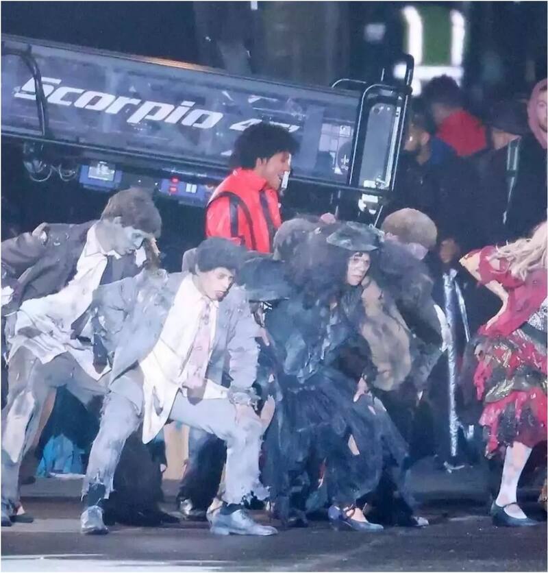 Recientemente, varias cuentas de fans en redes sociales han compartido fotos de la grabación de la cinta, en específico del momento de “Thriller”, el video que marcó un antes y un después en el pop.