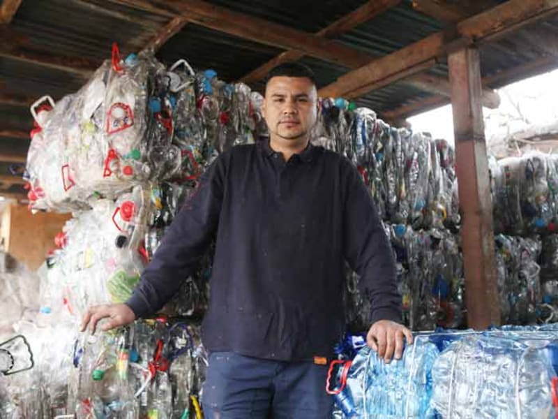 Carlos Suazo (34) es otro de los actores principales en esta cadena. Este joven vive en la comuna y es mecánico automotriz de profesión, sin embargo, está volcado completamente a la conciencia medioambiental y hoy es reciclador de base y junto a su familia está dedicado al acopio de este material. " Hace un año y medio estoy haciendo esto en la comuna. Al municipio le gustó mi idea de reciclar y nos autorizaron, ahí me inscribieron como reciclador de base, así que compramos mallas, hacemos unos canastillos que luego instalamos en diferentes puntos de la comuna para que la gente deposite las botellas. Ahora, mi trabajo es recuperar y recolectar esas botellas PET; al mes recolectamos 8 mil kilos", señaló Suazo a La Cuarta Comerciante, quien ha logrado instalar unos 205 puntos de reciclaje en la zona, además.