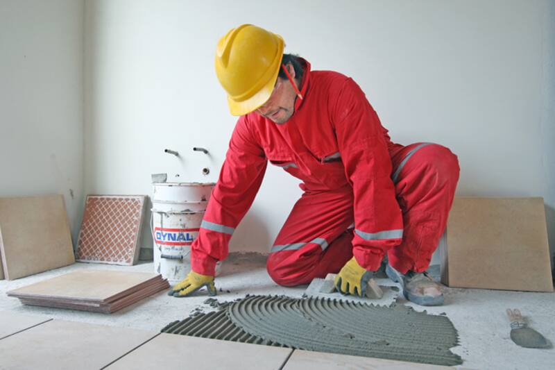- El adhesivo se debe aplicar con una llana dentada en un ángulo de 45°, "peinando" el pegamento, formando un arco o semicírculos en diferentes direcciones.