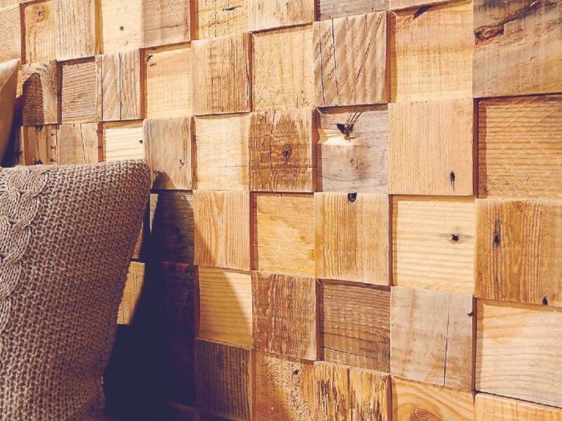 - Una muy buena alternativa para revestir son los tableros terciados de pino para muro interior, ya que algunos ofrecen un sistema de machihembrado que permite una fácil manipulación en su traslape y rapidez en la instalación.