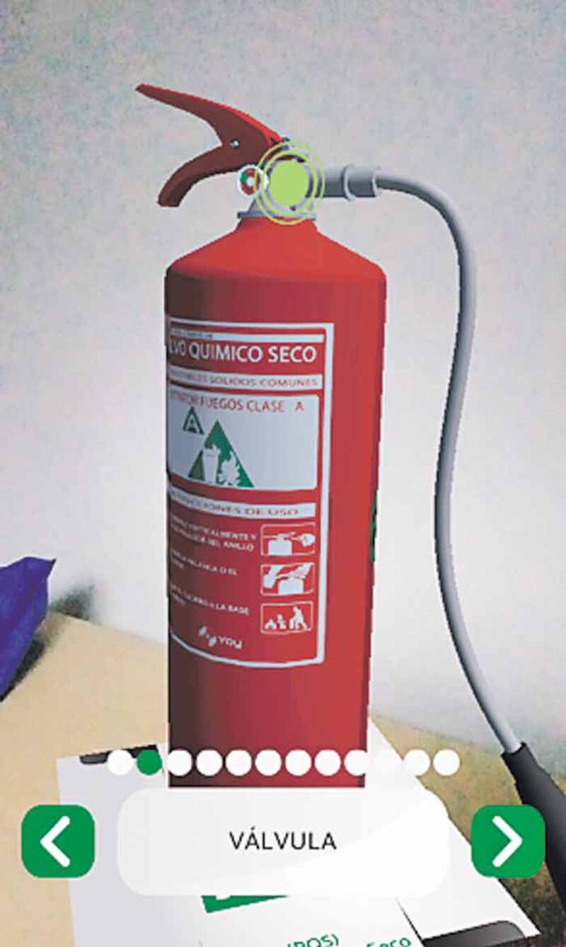 1. En la primera se despliega un extintor virtual en donde el trabajador puede identificar y conocer todas las partes y piezas de los extintores más comunes.