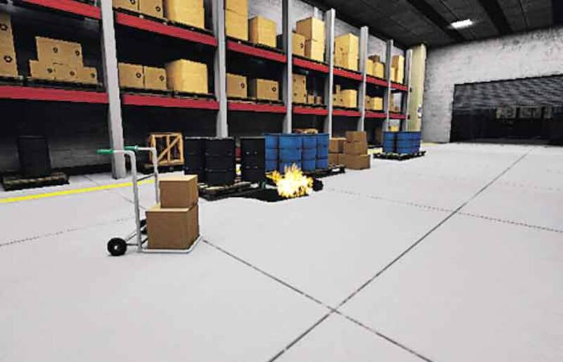 2. La segunda parte consta de cinco ejercicios aleatorios donde aparecen distintos elementos virtuales quemándose (que se proyectan sobre un folleto que se obsequia al trabajador) y éste debe colocar en práctica lo aprendido y utilizar el extintor correcto.