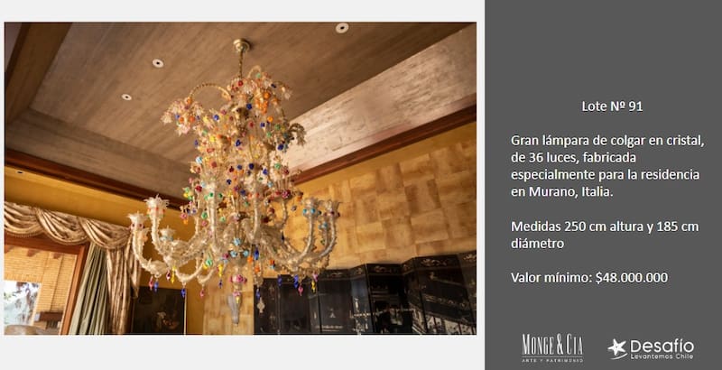 - Una lámpara colgante de cristal italiana en $48 millones, mínimo.