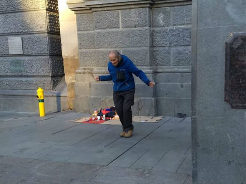 Cristóbal explicó que iba caminando por la Plaza de Armas cuando tuvo que detenerse, perplejo, al ver al anciano. Decidió grabarlo y acercarse a él para conocer mejor su situación.