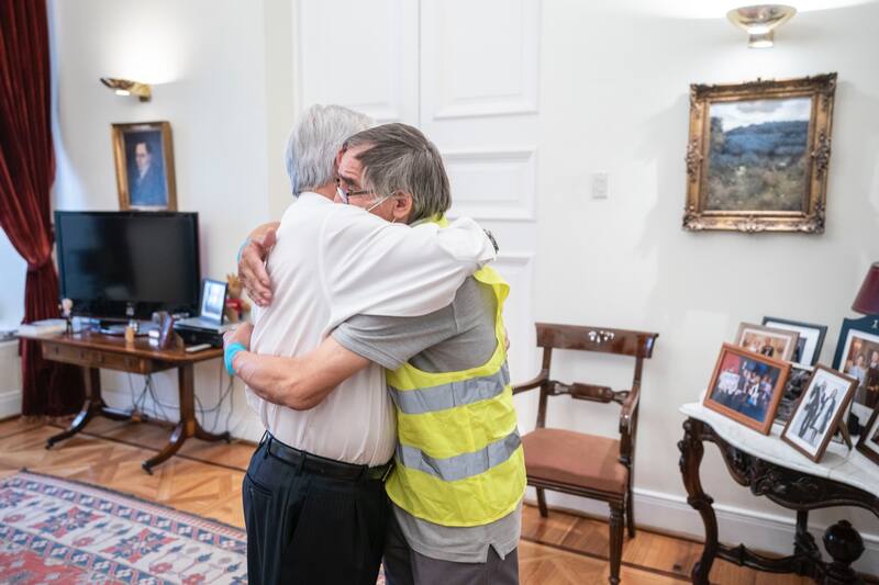 El hombre subió hasta el despacho presidencial donde se fundió en un abrazo con el primer mandatario. Minutos después, el ministro vocero de Gobierno, Jaime Bellolio, señaló que debido a las disculpas el presidente Piñera desistió de presentar una querella contra la mujer, quien tras el incidente fue detenida y trasladada a la constatación de lesiones de rigor, para luego seguir hasta la 1º Comisaría.