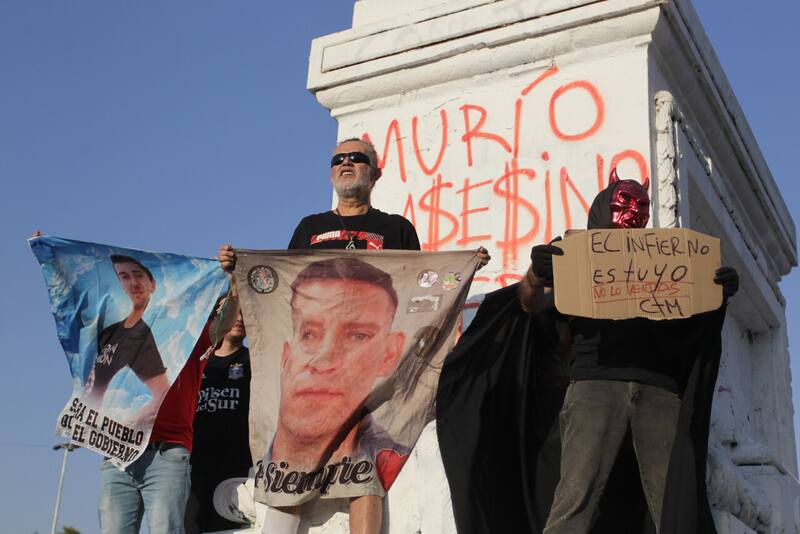 En la manifestación recordaron el rol que tuvo el exPresidente durante el estallido social de octubre de 2019, una de las peores criris que atravesó en su segundo mandato y donde tuvo que enfrentar acusaciones de violaciones de derechos humanos.