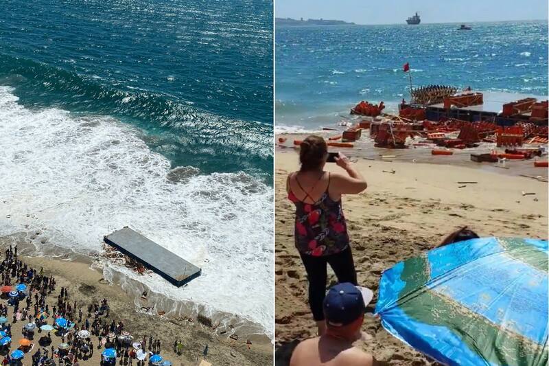 Se presume que el oleaje pudo desatar la balsa, lo cierto es que la estructura impactó en la arena y comenzaron a caer todos los elementos que estaban sobre ella.