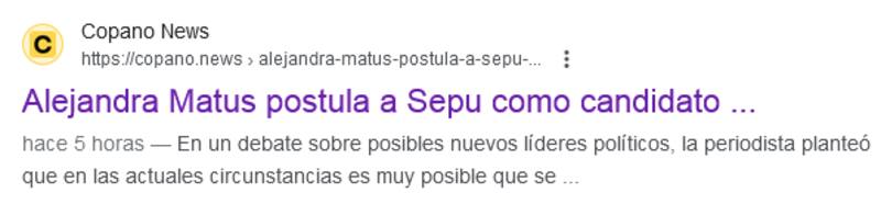 Pero la periodista tomódistancia de la publicación del sitio de Copano, argumentando que no postuló a “Sepu” como candidato, pues solo lo utilizó como ejemplo de lo que ocurre actualmente en el sistema político.