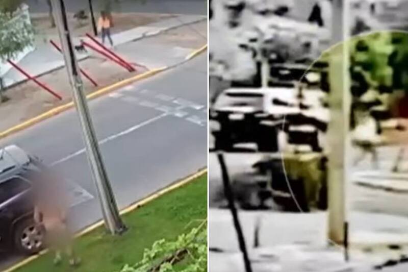 Un video registrado por cámaras de seguridad dio cuenta del extraño actuar de un sujeto que desciende de un vehículo, se quita la ropa y procede masturbarse en plena vía pública, ante la presencia de mujeres.