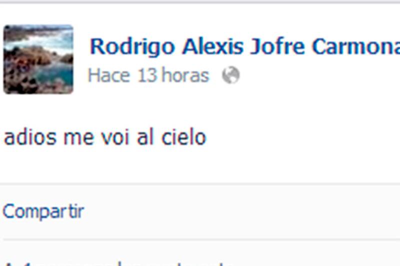 "Adiós me voy al cielo", escribió Rodrigo Jofré en su muro de facebook minutos antes de tomar la extrema medida.