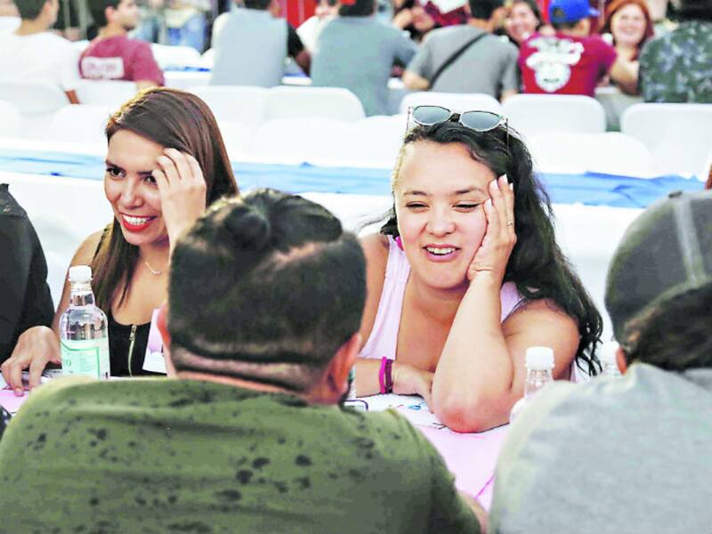 El proceso estuvo separado por edades, en rangos de 18 a 28, 29 a 39, 40 a 50 y más de 50. Allí se ubicaron mujeres y hombres frente a frente, distantes sólo por una frágil mesa a un paso del romance.