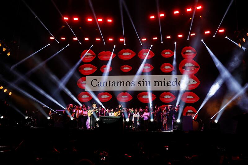 "Quiero que gritemos por todas nuestras hermanas asesinadas, por todas nuestras hermanas desaparecidas, por todas nuestras compañeras violentadas. Vamos a gritar fuerte para que nos escuche el presidente y para que nos escuchen en todo el mundo", manifestó Mon, quien se unió a las voces para interpretar "Canción sin miedo", tema escrito por la mexicana Vivir Quintana, inspirada en los 10 femicidios diarios que registra dicho país.