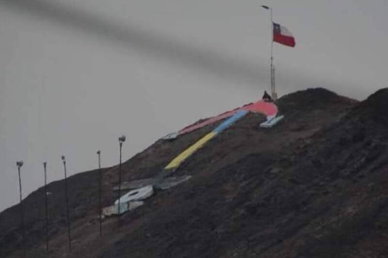 Sorpresa generó entre la comunidad de Antofagasta el pintado sobre el Ancla de la ciudad -ubicada en el cerro homónimo- con los colores de la bandera de Colombia.