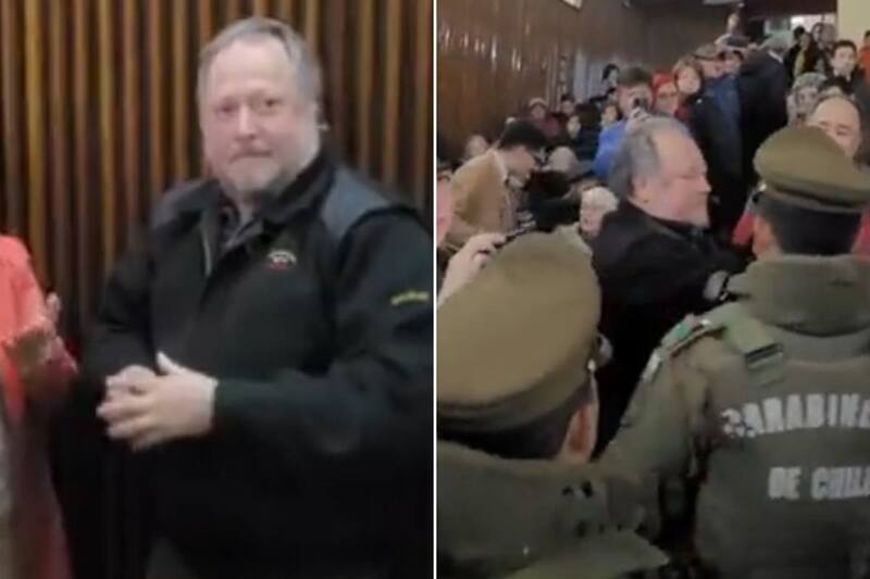 En ese momento comenzaron a exigirle se sentase o de lo contrario, se fuera del lugar. Ante el griterío que se armó, entró personal de Carabineros para intentar dialogar con el hombre, que se rehusaba a salir del pasillo. “Pero oiga, si yo vengo acá a escuchar”, les decía a los uniformados.