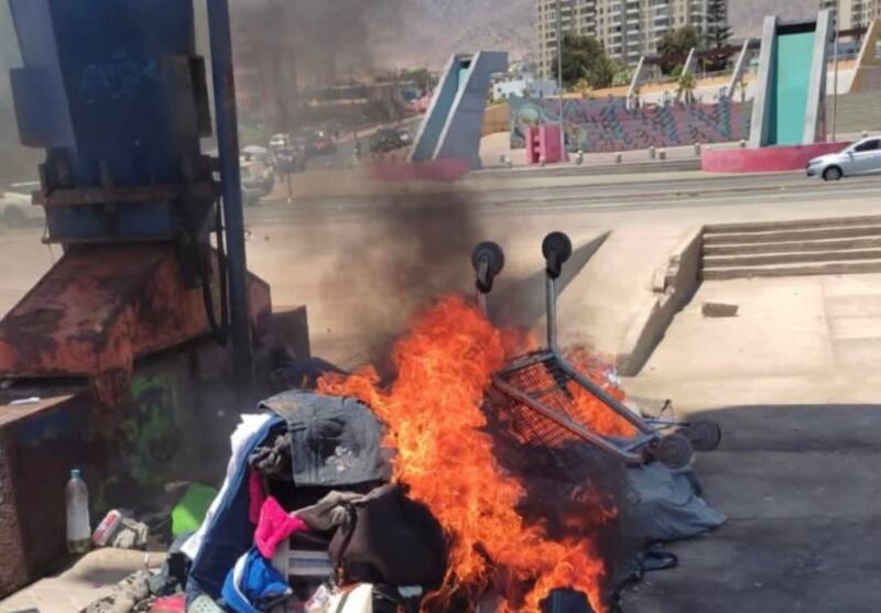 Por La CuartaAntofagasta: video muestra a sujetos quemando pertenencias que serían de migrantes