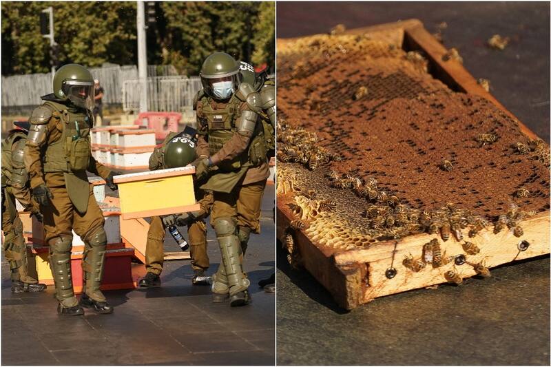 En medio del procedimiento, una abeja habría picado a uno de los funcionarios, tal como quedó registrado en un video compartido por Carabineros en Twitter.