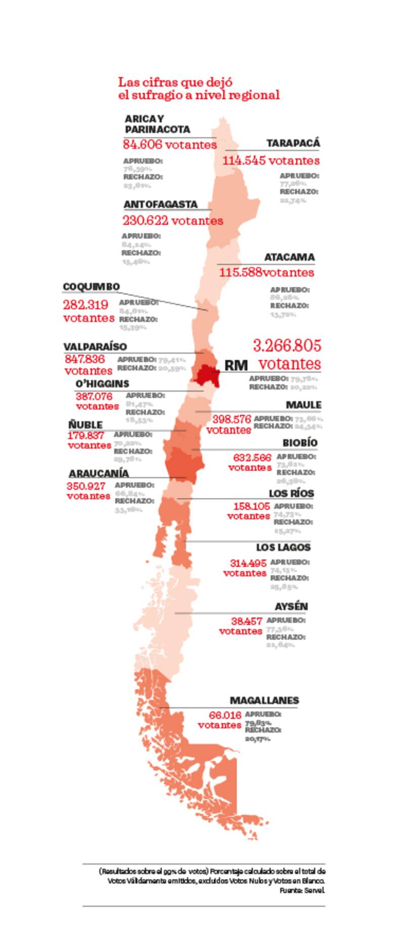 Con el 99,66% de las mesas escrutadas, el Servel indicó que esa opción obtuvo un 78,28% versus el 21,72% del "Rechazo". b Opción de la Convención Constitucional también derrotó a Convención Mixta Constitucional.