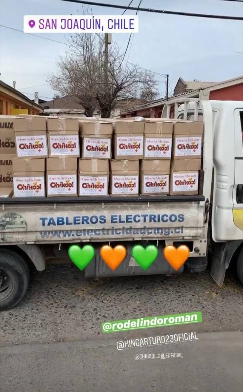 El King, por medio de la gestión de su amigo y empresario Esteban Silva, dueño de Chikool, llevó a cabo la entrega de cajas solidarias para los vecinos de la población el Huasco, en la comuna de San Joaquín.