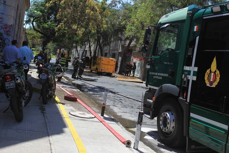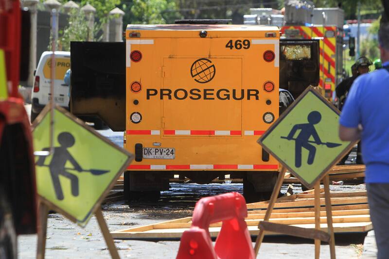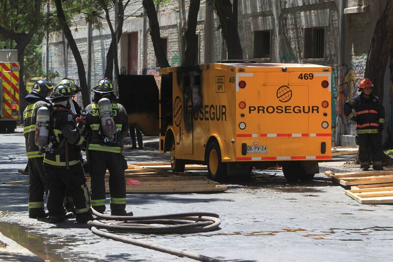 Los hombres armados dejaron a los vigilantes en la calle y huyeron con el blindado hasta Almirante Barroso con Mapocho. Allí habían sacado bolsas con dinero y procedieron a prender fuego a la máquina.