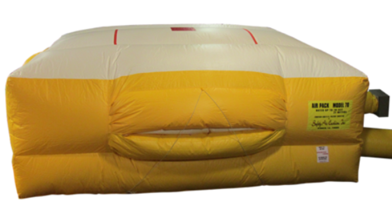 Según el fabricante, se trata de una colchoneta de bomberos para evacuar siniestros en edificios de hasta 7 pisos.