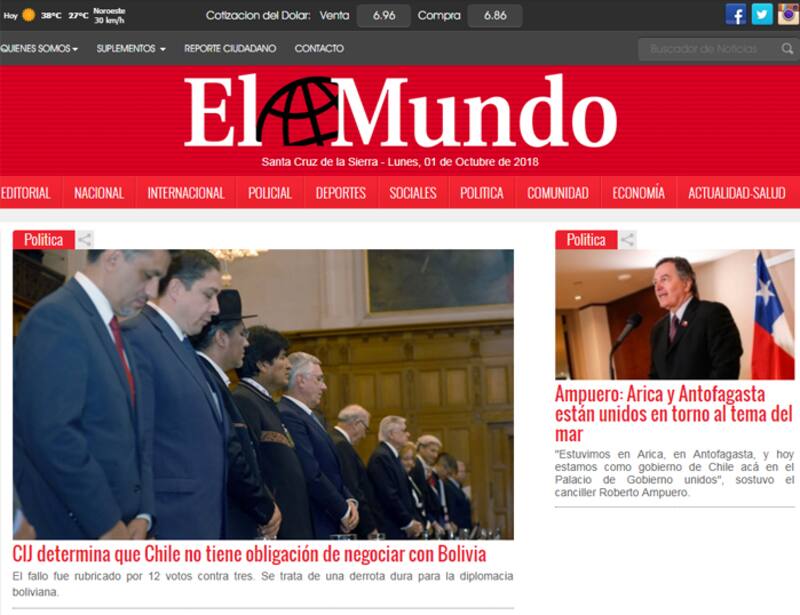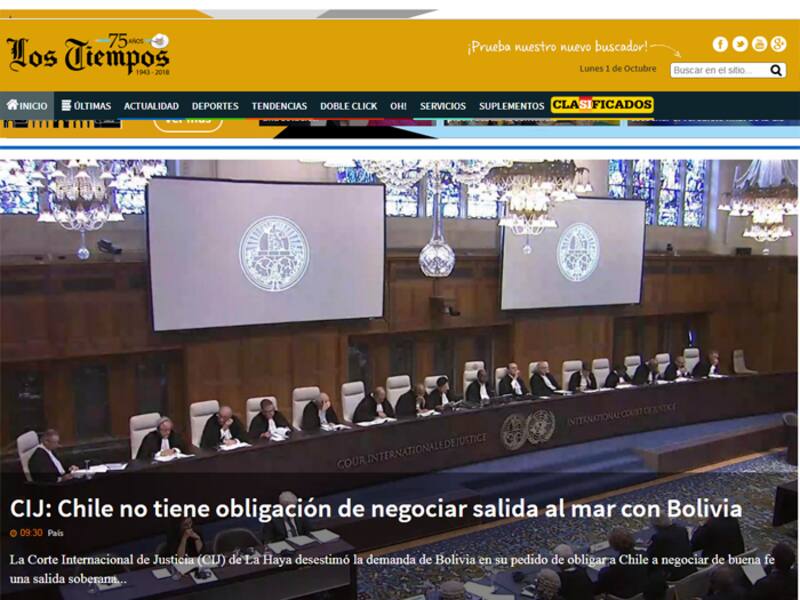 Sin llantos ni pataleos informó la prensa boliviana sobre el fallo de la Corte Internacional de la Haya, que echó por tierra el anhelo de obligar a Chile a negociar una salida al mar para el país altiplánico.