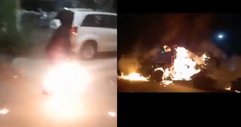 Los sujetos terminaron llegando al recinto, donde empezaron el ataque con bombas molotov, objetos contundentes y fuegos artificiales. En el lugar, el grupo también intentó quemar algunos carros policiales.