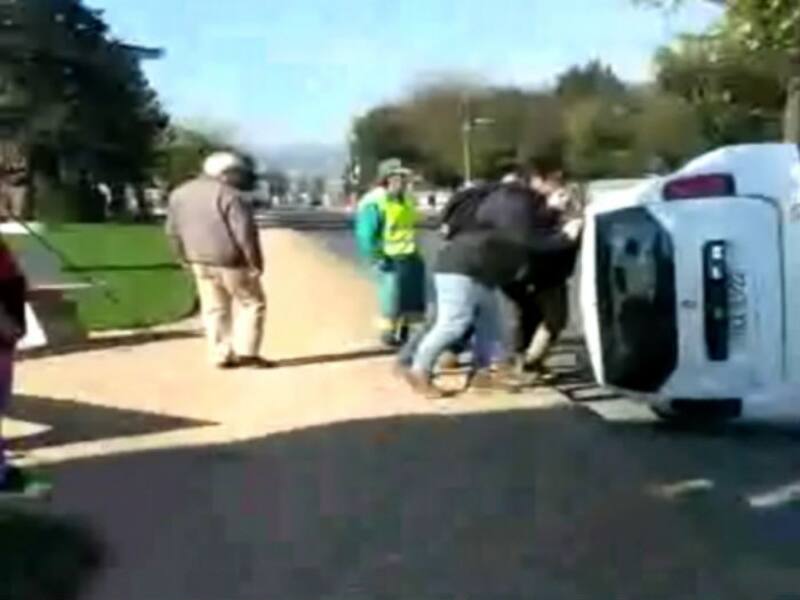 En el accidente, una mujer embistió a la pareja de Carabineros, el auto terminó volcado y se vieron involucrados otros dos automóviles.