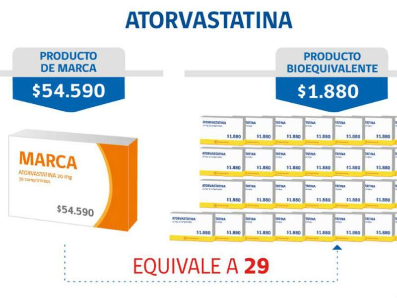 Para explicar la problemática el ministro Mañalich, ilustró usando como ejemplo la atorvastatina. "Nosotros tenemos acá un medicamento para manejar el colesterol alto en la sangre, una condición muy común en Chile, que el medicamento de marca vale 55 mil pesos la caja. Cuando yo voy y exijo, porque la receta del médico así lo debe señalar, cuál es el medicamento genérico, resulta que me encuentro que con lo que pagaba por una caja de medicamento de marca, puedo comprar varias cajas de medicamentos bioequivalentes con calidad certificada, vale decir, lo que pago por un mes de tratamiento puedo financiar un año y medio".