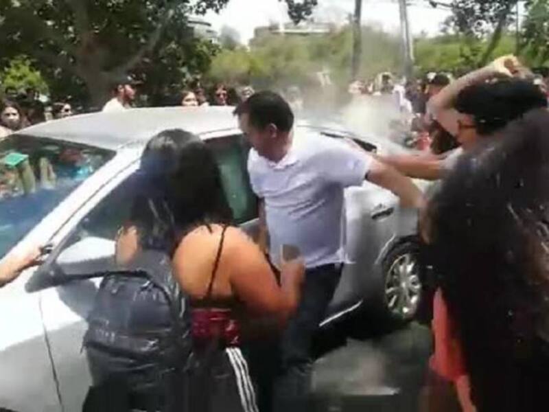 De acuerdo a testigos, el furioso conductor intentó pasar pese a la presencia de los manifestantes. A raíz de esta situación, se desató la pelea que incluyó destrozos al auto.