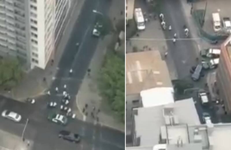 Un video captado por un helicóptero policial da cuenta del trabajo que se extendió por distintos puntos de Santiago Centro y que terminó con la aprehensión de los antisociales.