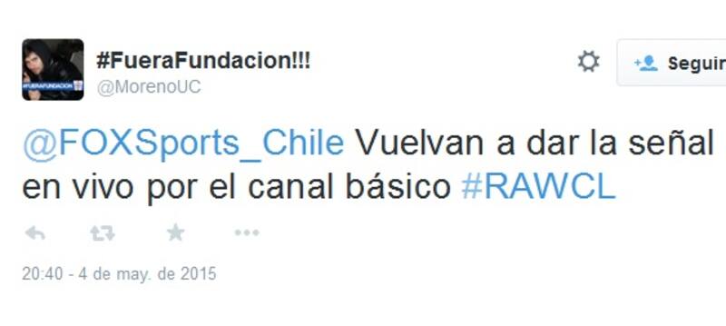 Cuestión que los sorprendió el doble cuando cacharon que la transmisión si iba pero por una señal premium del canal. Con eso ardió troya y los cabros buenos descargaron toda su ira por la red del pajarito ya que no pudieron disfrutar del debut de Sami Zayn ante John Cena o la mansaca que quedó entre Dean Ambrose, Seth Rollins, Roman Reigns y Randy Orton.